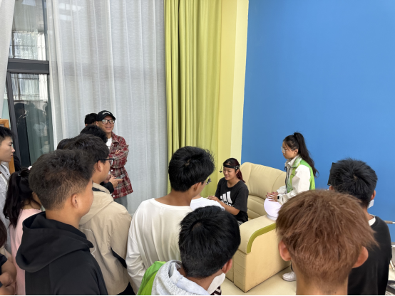 讲解员详细介绍了中心的建立历史、师资力量以及日常活动开展情况。随后,讲解员带领学生们参观多种功能室。有情绪宣泄室、心理辅导室、沙盘咨询室、团体辅导活动室和音乐放松室,并对如何预约心理健康教育中心以及如何使用各功能室的专业设备进行了详细讲解。