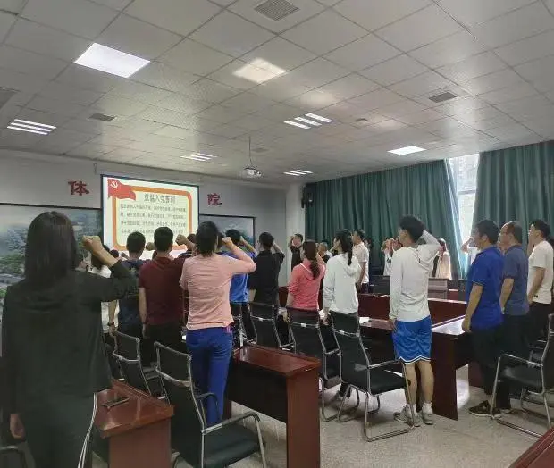 活动开始,大家高举右手,紧握右拳,在领誓人谷思缘同志的带领下重温入党誓词。重温铿锵的誓言,全体党员目光坚毅,作为一名共产党员的光荣和自豪感油然而生!