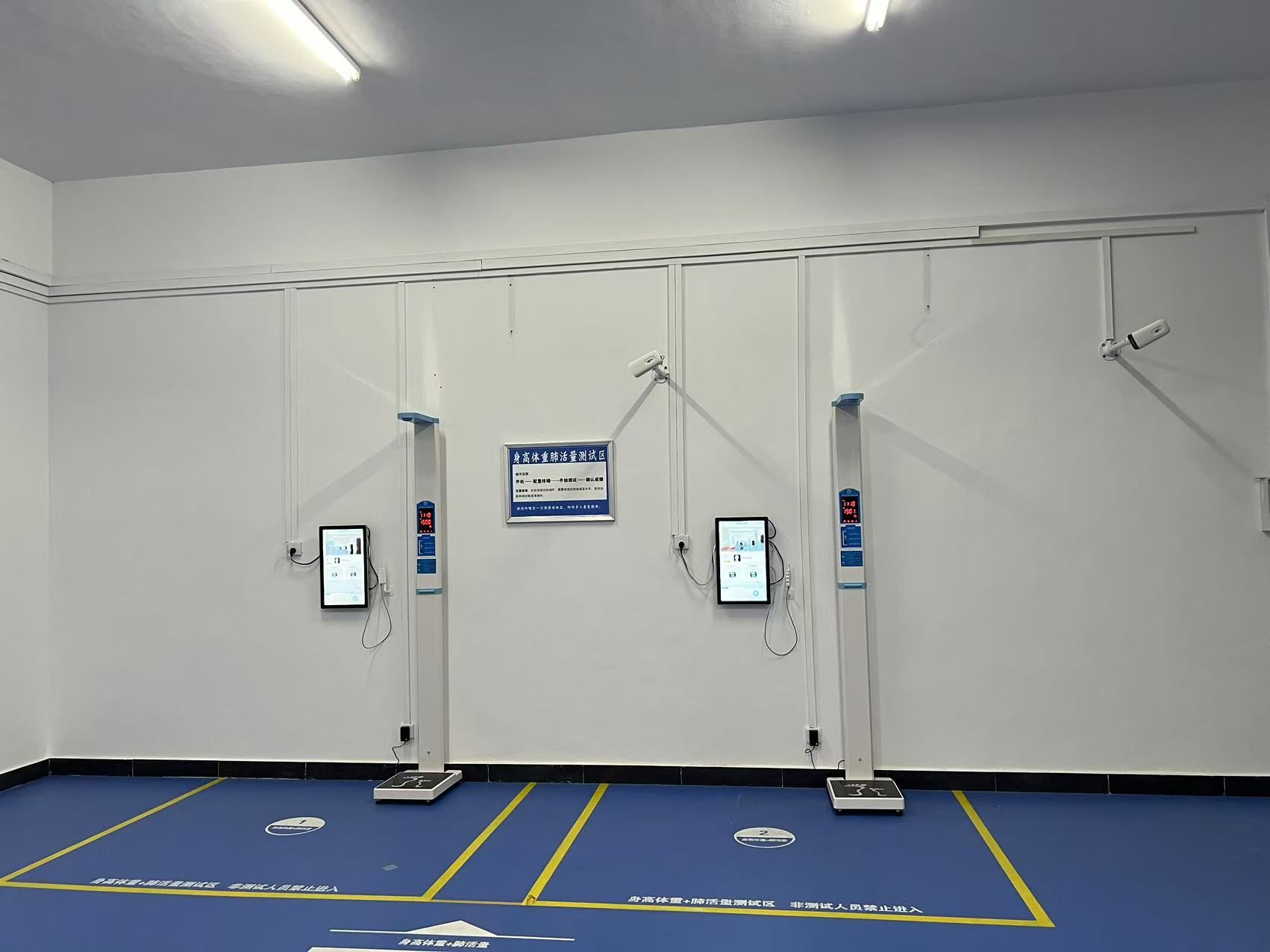 (1)体质测试装置.主要包括身高体重测试仪器、肺活量测试仪器、坐位体前屈测试仪器、立定跳远测试仪器等设备。能够满足体质测试的快速、准确的需求,预防作弊,并实现数据的自动整理和信息自动录入的需求,减少对于人工的依赖。
