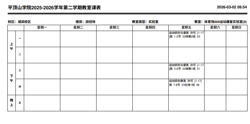 204康复运动实验室课表